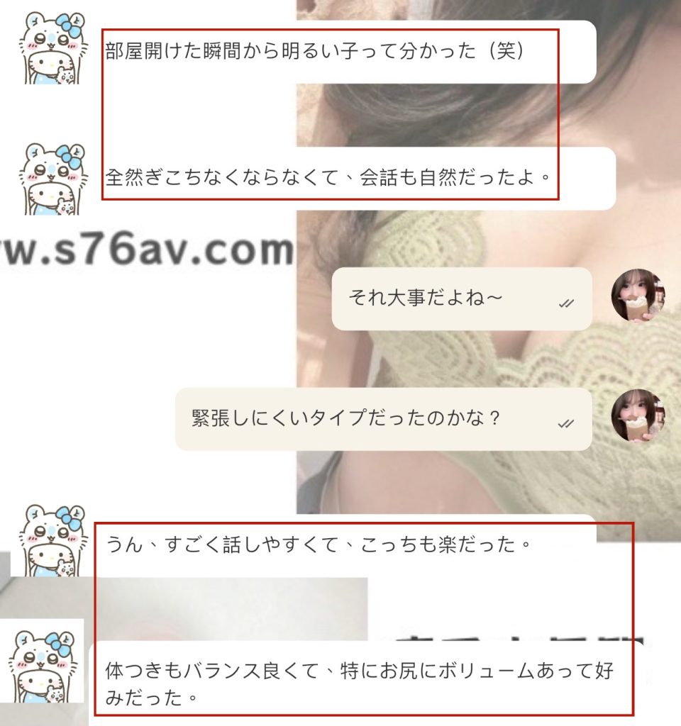 ドアを開けた瞬間からリラックスできるタイプ♡ 明るくて話しやすく、ずっと友達みたいに自然に過ごせるよ。最初から落ち着けたって聞いて本当に嬉しかった☺️ お兄さん、ありがとう〜