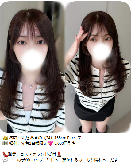 まずはこのページの子たちをチェックして、気になる子がいたら私にLINE・Telegram・匿名で気軽に聞いてね。