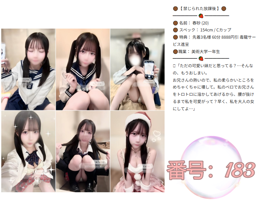 番号:183|春砂(20)154cm Cカップ