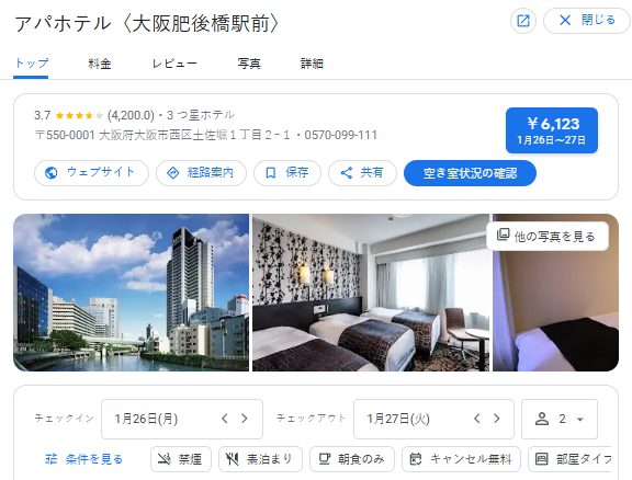 ⭐ ホテル名(タイトル): アパホテル〈大阪肥後橋駅前〉|西区 肥後橋 アパホテル