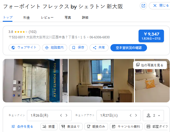 ⭐ ホテル名(タイトル): フォーポイント フレックス by シェラトン 新大阪|淀川区 新大阪 高級ホテル