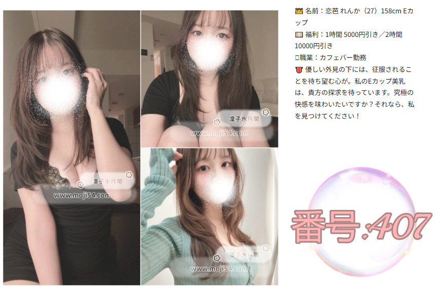 💎 番号:407|恋茜れんか(27)158cm Eカップ